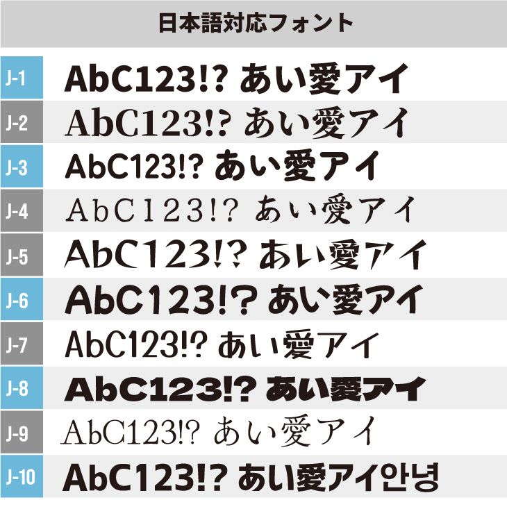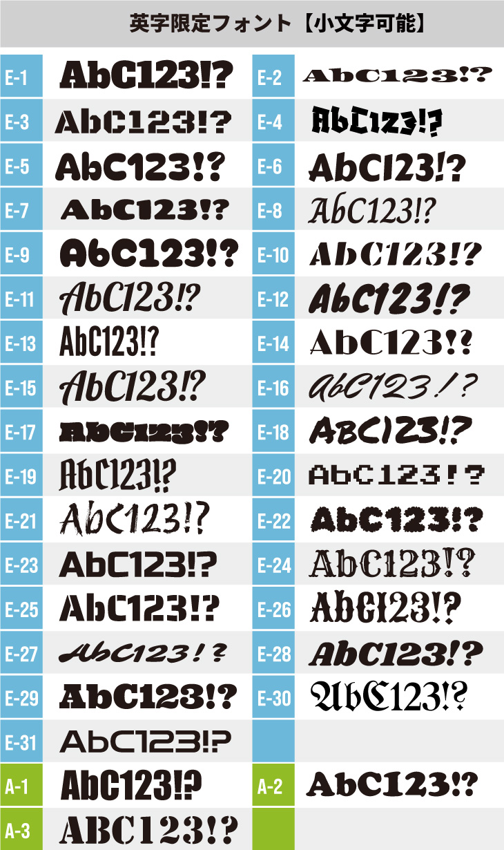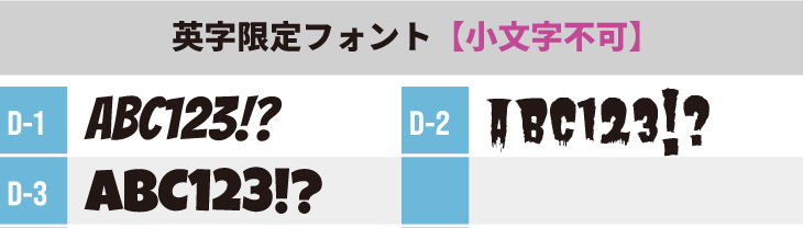 個別プリントにおいて、英字限定フォントを使用する場合は、全員が英字である必要がございます。ご注意ください。
