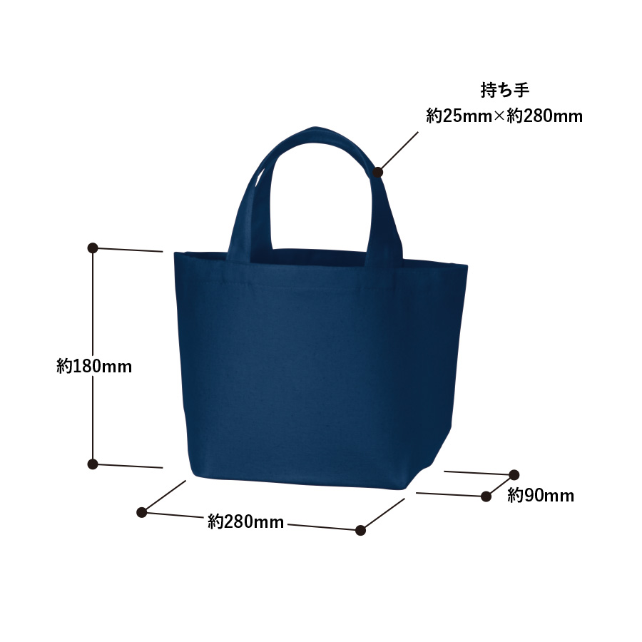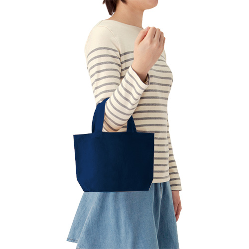 厚みのあるキャンバス生地のトートバッグで、ランチバッグにぴったりなサイズです。